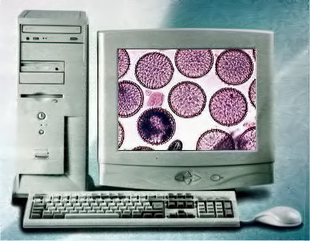 ordinateur ! Des cristaux multicolores qui grandissent en lumière polarisée, une amibe qui se déforme sur fond noir des cellules qui se divisent en contraste de phase, une écaille de papillon en fond clair, rien n’échappe à votre regard. Un simple clic de souris et la photo est prise et il en est de même pour une séquence vidéo. Vous pouvez traiter l’image ou l’envoyer telle quelle sur le Web, il vous aura fallu 5 minutes. |