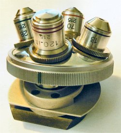 les faibles grossissements, l'objectif à glissière ne