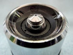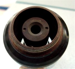 La focalisation de la lumière sur l'objet se fait en dévissant plus ou moins la bague extérieure. |