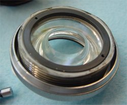 L' objectif est maintenu au centre par une lame de fermeture. |