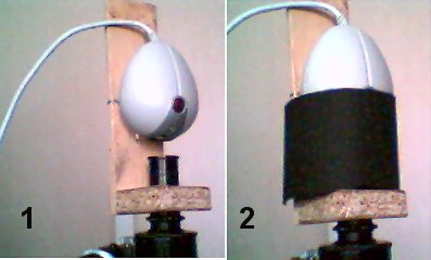 En 1, le montage; en 2, le système opérationnel avec une bague noire (papier à dessin) protégeant de la lumière latérale. |