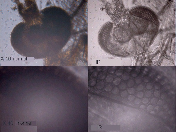 L'éclairage avec une LED infrarouge externe ( de même type que dans les téléconmmandes TV ) permet de voir des détails invisibles autrement.
