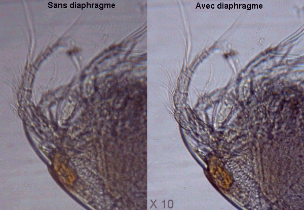 Voyez les améliorations dans les images ci dessous pour 2 grandissements (copépode et écaille aile papillon : |