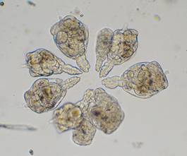 | Animaux individuels en colonies ou pseudo-colonies. Colonies pélagiques reliés par des excréments gélatineux dans la zone des pieds |