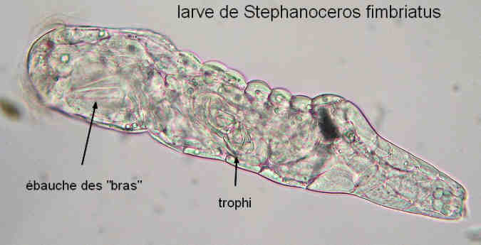 | Glandes du pied nombreuses. Organes rotatoires, munis d’un trochus net : Hexarthra ou de type Conochilus | ||||
