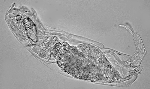 Pied long,avec 2-4 divisions.Orteils émoussés en forme de baguettes cylindriques. Déplacements par à-coups. Mastax avec intramallei |