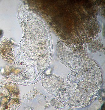 Sans papille surmontée d'une épine Tête généralement non élargie.Rostre peu développé chez certaines espèces. Organe rotatoire le plus souvent avec des disques ciliés obliques munis de 2 touffes de cils courts et latéraux. Deux orteils plus ou moins longs (sauf : P.doliaris). Corps en fuseau ou en forme de ver. Uncus à 1-6 dents . |