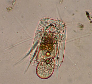 Organe rotatoire selon le type Asplanchna, bouche entourée de soies rigides. Organes sensoriels latéraux disposés vers l’intérieur ; yeux cérébraux ; souvent avec oreillettes ciliées , avec et sans lorica |
