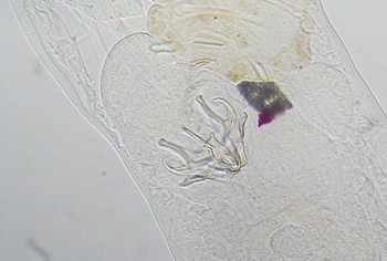 Parties solides du Trophus individualisés .En vue latérale, manubrium présentant de nettes formations en forme de crochet