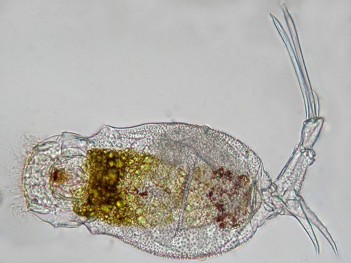 Tête ,tronc et pieds munis d’une carapace .Carapace du tronc élargie latéralement ,fortement granuleuse Longues épines sur la carapace dorsale et l’appendice anal |