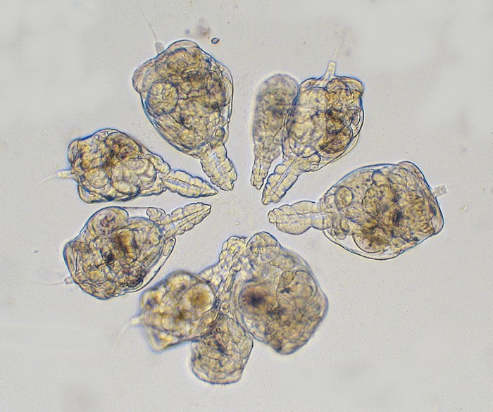 Pied existant organe rotatoire avec corona circulaire à 6 jusqu’à 8 lobes. Femelles adultes généralement sessiles. Organes rotatoires de type Hexarthra |