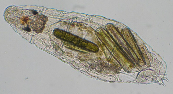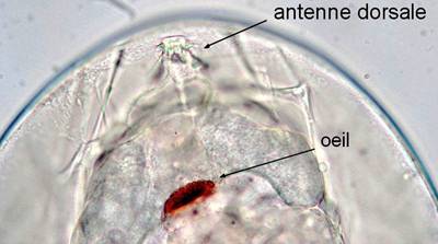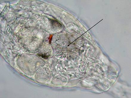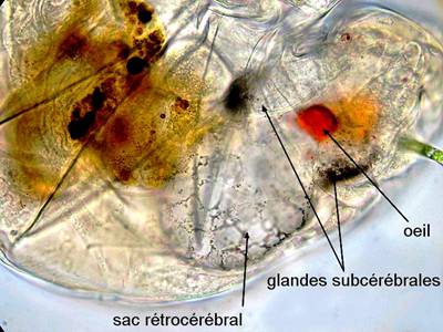 Vue d'ensemble de quelques éléments internes du rotifère : 1 : glandes gastriques |
