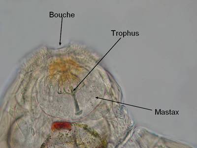 Présentation de l'ensemble bouche –trophus- mastax qui vont permettre l'ingestion des aliments |