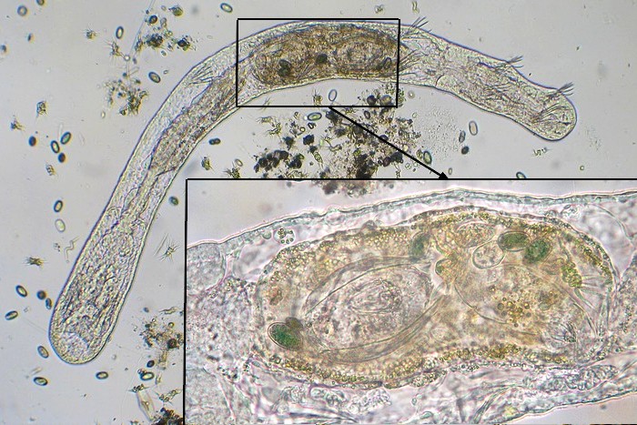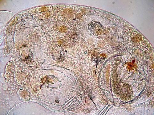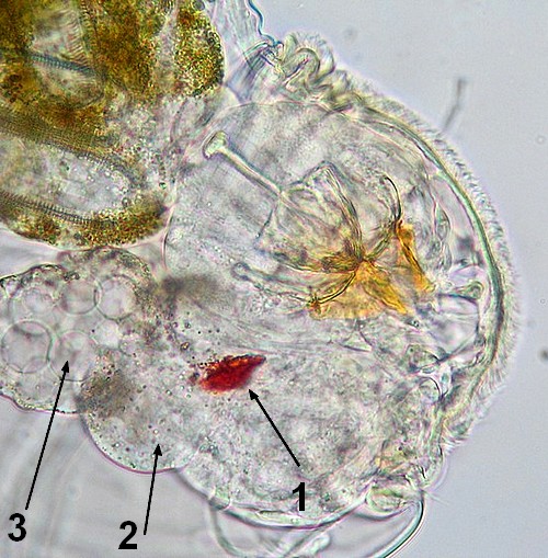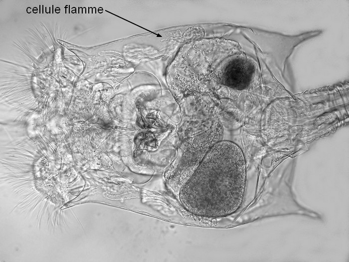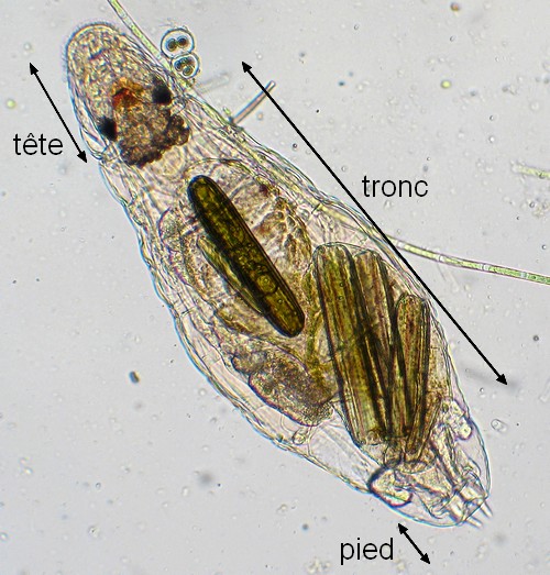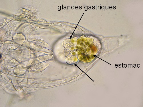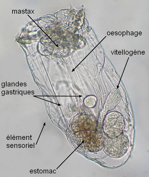 Anatomie Malgré leur petite taille et le faible nombre de cellules, ils sont constitués d'organes spécialisés au nom révélateur (œil, cerveau, oesophage, estomac, intestin) , que la transparence du tégument permet de voir sur l'animal vivant.Le système digestif se compose tout d'abord d'un pharynx ou mastax |