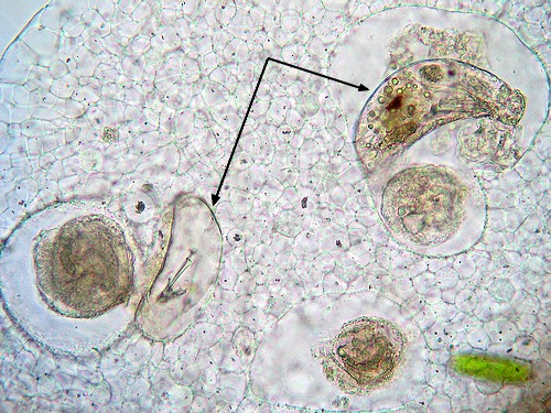 | Les rotifères ont aussi leurs prédateurs : ici quelques exemples trouvés au cours de mes observations |