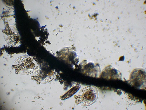 Ecologie et répartition Les Rotifères colonisent des biotopes aquatiques ou péri-aquatiques variés, du sol humide au milieu marin. Communs dans les eaux douces où la majorité d'entre eux appartiennent aux Monogonontes, ils sont rares en mer où on observe surtout, à côté des Seisoniens, des Monogonontes du genre Synchaeta. |