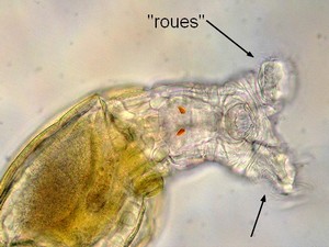 | Les Rotifères sont également pourvus de systèmes nerveux (organes sensoriels, œil ou ocelles - parfois absents -. ganglions cérébroïdes) et musculaire. |