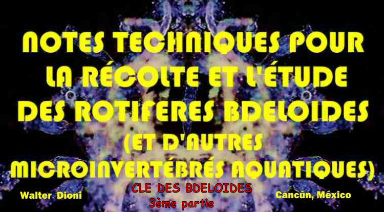 Cet article était programmé comme la troisième partie (Notes Techniques) pour la Clé des genres des rotifères Bdelloidea déjà publiée. Une fois écrite je me suis rendu compte que tant la description des micro habitats, que les techniques à utiliser pouvait même être appliquées presque sans modification non seulement aux Bdelloidea mais à beaucoup d'autres groupes de micro invertébrés. |