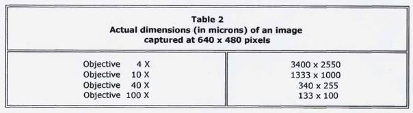 Un pixel est une entité « tout ou rien » ; il ne contient aucune information supplémentaire, juste une ombre qui dépend de la profondeur de couleur, ou de l’échelle des gris définie sur votre système. Ainsi, sur une ligne  de 320 pixels, il y a 320 points qui peuvent être activés. L’image provenant du microscope qui doit être enregistrée sur ces 320 pixels fait 3400 µm (voir table 2)